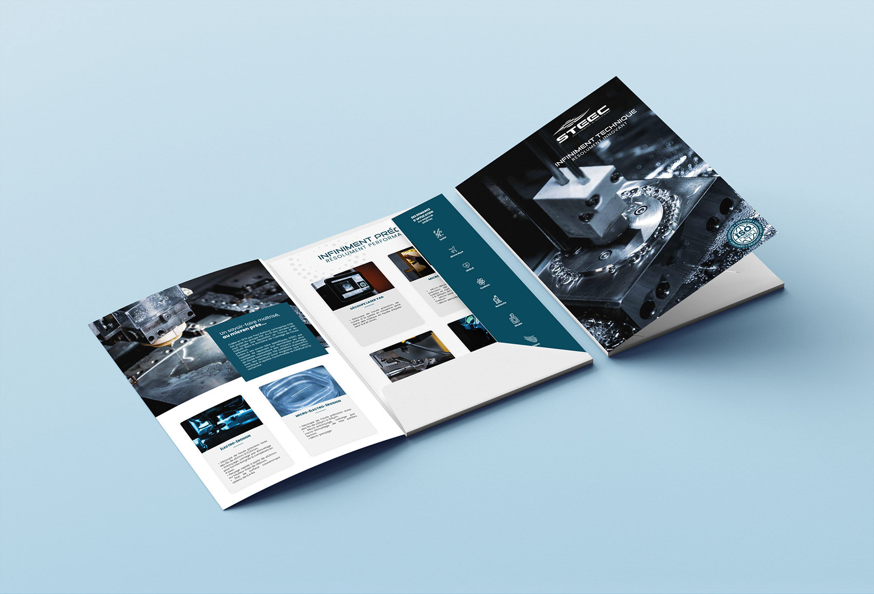 Opened bi-fold flyer brochure cover mock-up